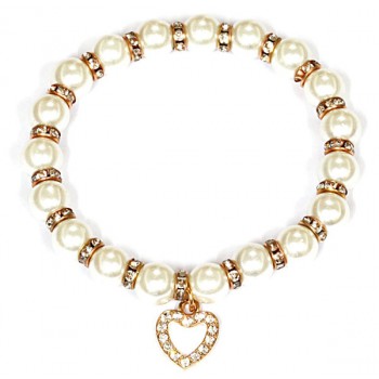 Elastische armband glasparel met hart bedel .Lengte 17-18 cmNikkel, lood en cadmiumvrij.