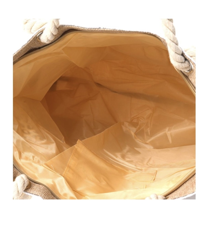 Beach Bag Leopard SilverDeze tas is een stijlvolle strandtas met een unieke luipaardprint in zilverkleurige tinten aan de bovenkant. De onderkant gemaakt van jute stof, wat een speels contrast geeft. De tas heeft stevige handvatten van touw en is gemaakt van polyester. De sluiting is een praktische rits, waardoor je spullen goed beschermd blijven.Een trendy en praktische keuze voor een dagje strand of een zomerse uitstap! Afmeting: 55x37x14cm