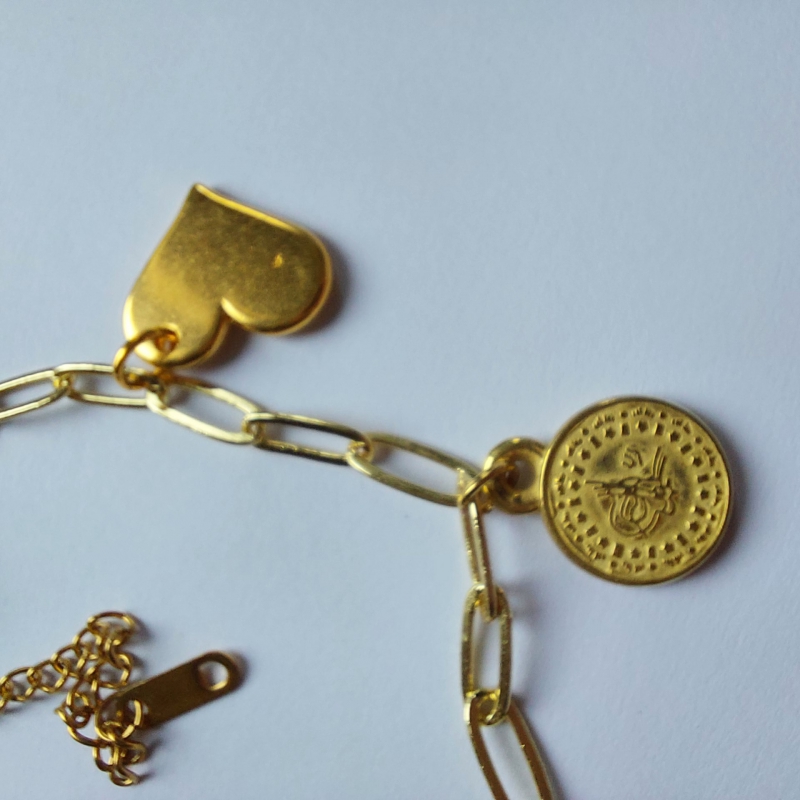 Bedelarmband ( handgemaakt)Mooie bedelarmband van jasseron en aparte bedels