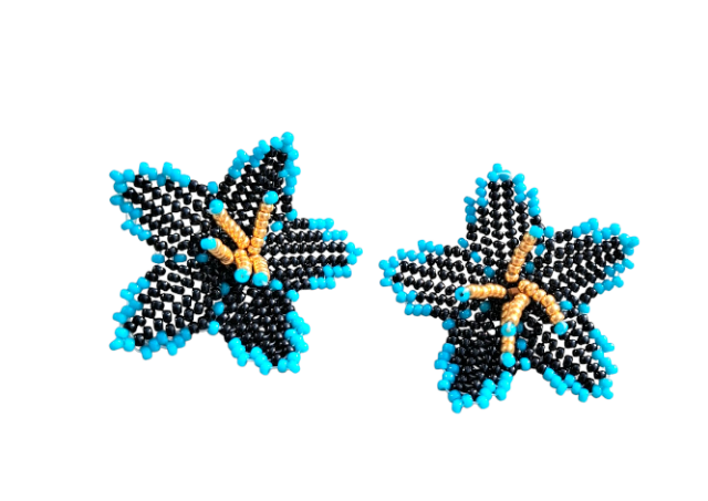 Bloem oorbellen LauraDeze prachtige oorbellen zijn met de hand gemaakt. De kleuren zijn natuurlijk perfect passend bij iedere outfit.Maak een statement met deze miyuki oorbellen en draag ze om je outfit compleet te maken.Prachtige bloemoorbellen in de kleuren Zwart- fel blauw en goud met oorsteker.Origineel, lichtgewicht en aangenaam om te dragen. Wij adviseren om niet te douchen of te zwemmen met onze sieraden, dit om de houdbaarheid te waarborgen.