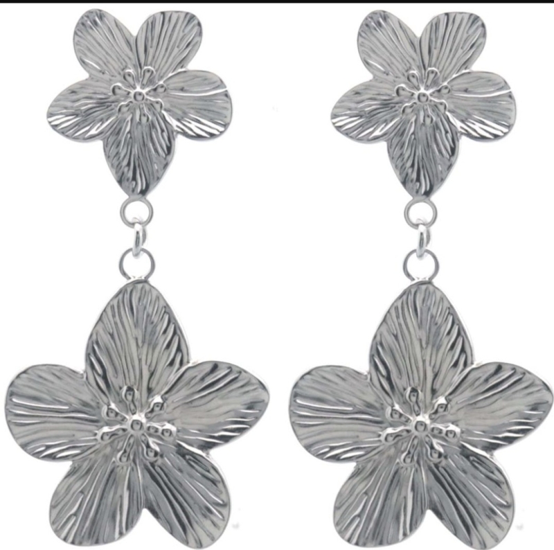 Steel Earrings Flowers Stijlvolle oorbellen met een dubbele bloem hanger.Maak een statement met deze super gave bloemoorbellen in de kleur zilver.Afmeting: 5.5x2.5cmEen trendy accessoire met een luxe uitstraling!