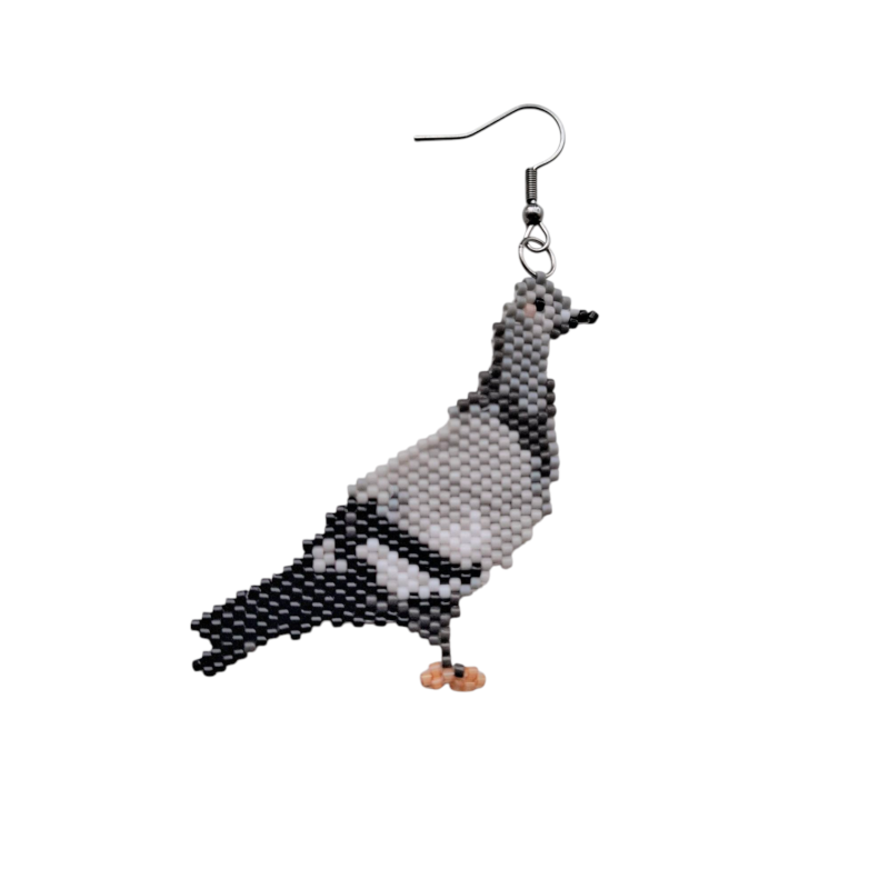 Duif oorbellen handgemaaktDeze handgemaakte oorbellen zijn 5 cm lang hebben een zilveren oorhaakje en een prachtig kralenontwerp in de vorm van een duif. Met zorgvuldig geselecteerde kralen in zwart, wit, grijs en subtiele roze accenten voor het oog, creëren ze een gedetailleerd en kunstzinnig beeld van de vogel. Dit unieke accessoire is perfect voor liefhebbers van sieraden met een persoonlijk tintje en een natuurlijke uitstraling. Een subtiel statement van vakmanschap en creativiteit!Handgemaakte kralenoorbellen – kleurrijk en uniekLaat jouw persoonlijkheid stralen met deze bijzondere oorbellen! Wij adviseren om niet te douchen of te zwemmen met onze sieraden, dit om de houdbaarheid te waarborgen.