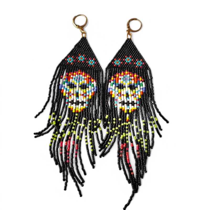 Franje boho oorbellen skull multicolorGeef je outfit een sprankelende touch met deze prachtige, met de hand vervaardigde kralenoorbellen. De speelse franjes in multicolor zorgen voor een stijlvolle en opvallende uitstraling. Het unieke ontwerp voegt een vleugje mysterie en elegantie toe. Perfect voor liefhebbers van bijzondere sieraden en handgemaakte accessoires! Handgemaakt en uniekKleurrijk en speelsLichtgewicht en comfortabelLengte 12 cm.Kleur: MulticolorHandgemaakte kralenoorbellen – kleurrijk en uniekLaat jouw persoonlijkheid stralen met deze bijzondere oorbellen! Wij adviseren om niet te douchen of te zwemmen met onze sieraden, dit om de houdbaarheid te waarborgen.