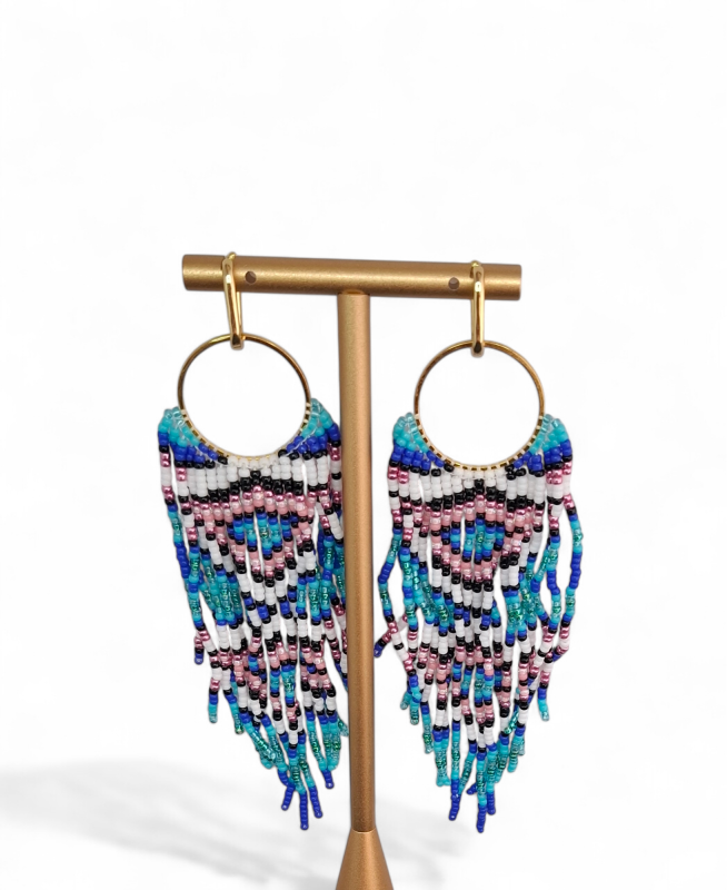 Franje Boho oorbellen Blue lagoonDeze prachtige oorbellen zijn met de hand gemaakt. De kleuren zijn natuurlijk perfect passend bij iedere outfit.Maak een statement met deze miyuki oorbellen en draag ze om je outfit compleet te maken.Franje oorbellen hangemaakt met Japanse Miyuki delica 11/0 daarbij gebuik makend van de brick stitch techniek .Dit is een techniek om kralen te weven. De goudkleurige oorhaken zijn van roestvrijstaal.Origineel, lichtgewicht en aangenaam om te dragen.Kleuren:wit- roze en blauwtinten.Lengte: 13 cm De oorbellen worden verzonden als brievenbus pakje inclusief track en trace code a 4.15Wij adviseren om niet te douchen of te zwemmen met onze sieraden, dit om de houdbaarheid te waarborgen.