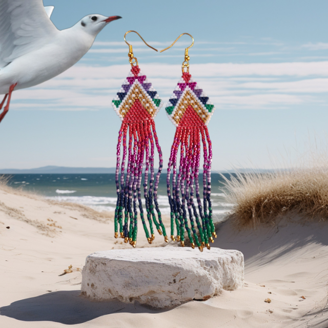 Franje oorbel JasmijnDeze prachtige oorbellen zijn met de hand gemaakt. De kleuren zijn lekker fel en zomers.Maak een statement met deze miyuki oorbellen en draag ze om je outfit compleet te maken.Deze oorbellen zijn hangemaakt met Japanse Miyuki delica 11/0 daarbij gebuik makend van de brickstitch techniek .De goudkleurige oorstekers zijn van roestvrijstaal.Origineel, lichtgewicht en aangenaam om te dragen.Kleuren: Groen, goud, wit en roodLengte: 8 cm Wij adviseren om niet te douchen of te zwemmen met onze sieraden, dit om de houdbaarheid te waarborgen.