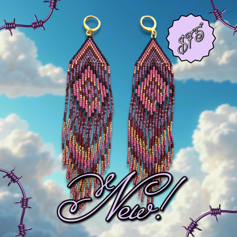 Franje oorbellen BohoVoeg een vleugje boho-glamour toe aan je collectie met deze opvallende handgemaakte franje oorbellen van 12 cm lang. Kenmerken: Kleurrijk ontwerp: De oorbellen zijn zorgvuldig geregen met Miyuki delica kralen in levendige tinten zoals roze, paars, goud en zwart. Uniek patroon: Geometrisch design zorgt voor een artistieke en moderne uitstraling. Elegant afgewerkt: Gouden haaksluiting voegt een verfijnde touch toe. Statement piece: Dankzij de royale lengte van 12 cm en de speelse franje zijn ze een echte eyecatcher , perfect voor festivals, avondjes uit of als opvallend accent bij een casual outfit. Handgemaakt: Elk paar is met liefde en precisie gemaakt, wat ze extra bijzonder maakt. Wij adviseren om niet te douchen of te zwemmen met onze sieraden, dit om de houdbaarheid te waarborgen.