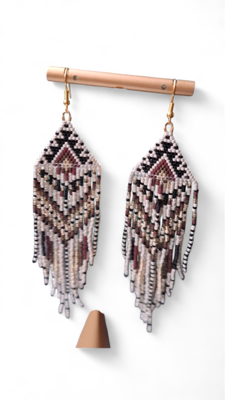 Franje oorbellen NoraDeze prachtige oorbellen zijn met de hand gemaakt. Oorbellen hangemaakt met Japanse Miyuki delica 11/0 daarbij gebuik makend van de brickstitch techniek .Dit is een techniek om kralen te weven. De oorhaken zijn van roestvrijstaal.Origineel, lichtgewicht en aangenaam om te dragen.Kleuren: Creme zwart bruin en goudLengte: 12 cm.De levertijd van de oorbellen kan iets langer duren. Als de oorbellen op voorraad zijn zijn dan geldt: voor 12 uur besteld is dezelfde dag verzonden.Wij verzenden de oorbellen als brievenbus pakketje inclusief track en trace code.Wij adviseren om niet te douchen of te zwemmen met onze sieraden, dit om de houdbaarheid te waarborgen.