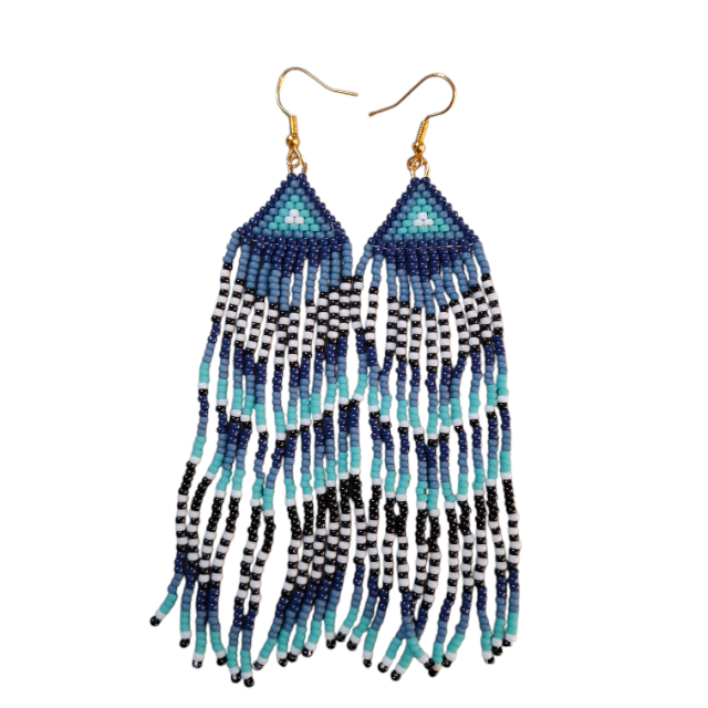 Franje Boho oorbellen PuckDeze prachtige oorbellen zijn met de hand gemaakt. De kleuren zijn natuurlijk perfect passend bij iedere outfit.Maak een statement met deze miyuki oorbellen en draag ze om je outfit compleet te maken.Franje oorbellen hangemaakt met Japanse Miyuki delica 11/0 daarbij gebuik makend van de brickstitch techniek .Dit is een techniek om kralen te weven. De goudkleurige oorhaken zijn van roestvrijstaal.Origineel, lichtgewicht en aangenaam om te dragen.Kleuren: blauw tinten en wit en goudLengte:10 cmWij adviseren om niet te douchen of te zwemmen met onze sieraden, dit om de houdbaarheid te waarborgen.