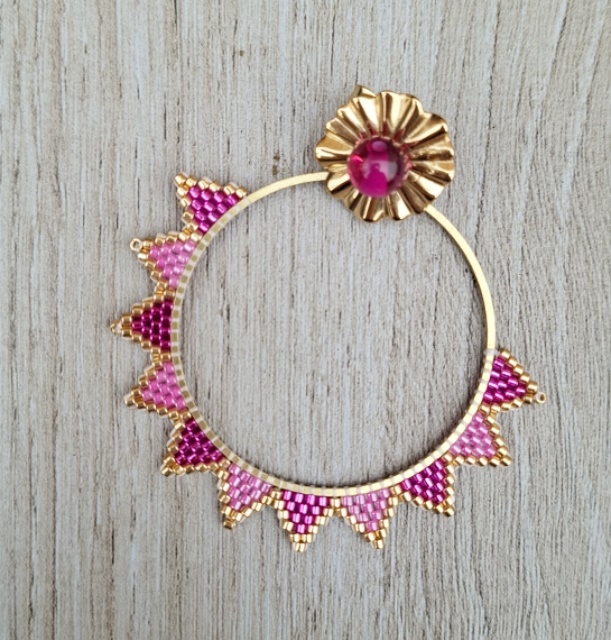 Hoop oorbel met puntjesDeze prachtige oorbellen zijn met de hand gemaakt.Maak een statement met deze miyuki oorbellen en draag ze om je outfit compleet te maken.Deze hoop oorbellen zijn hangemaakt met Japanse Miyuki delica 11/0 daarbij gebuik makend van de brickstitch techniek .De goudkleurige oorbellen zijn van roestvrijstaal en blijven lang mooi.Origineel, lichtgewicht en aangenaam om te dragen.Kleuren: Fuchia, roze en goudDoorsnee 4 cm Wij adviseren om niet te douchen of te zwemmen met onze sieraden, dit om de houdbaarheid te waarborgen.