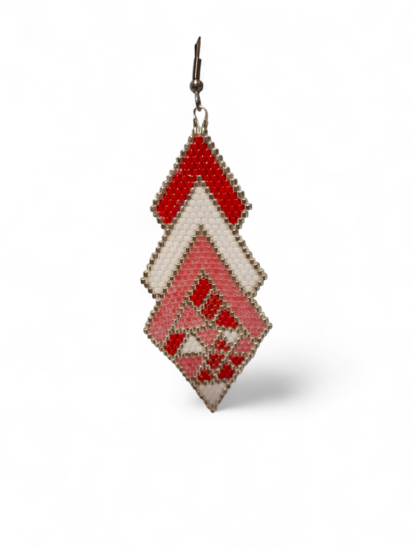 Oorbel driehoek NaomiDeze prachtige oorbellen zijn met de hand gemaakt. De kleuren zijn natuurlijk perfect passend bij iedere outfit.Maak een statement met deze miyuki oorbellen en draag ze om je outfit compleet te maken.Franje oorbellen hangemaakt met Japanse Miyuki delica 11/0 daarbij gebuik makend van de brickstitch techniek .Dit is een techniek om kralen te weven. De zilverkleurige oorhaken zijn van roestvrijstaal.Origineel, lichtgewicht en aangenaam om te dragen.Kleuren:Roze- wit- donkerroze - zilverLengte: 7 cm De oorbellen worden verzonden als brievenbus pakje inclusief track en trace code a 4.15Wij adviseren om niet te douchen of te zwemmen met onze sieraden, dit om de houdbaarheid te waarborgen.
