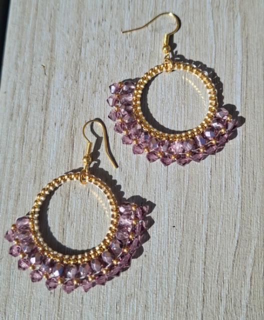 Oorbellen BoDeze elegante oorbellen stralen een verfijnde en feestelijke charme uit . Ze bestaan uit een ronde, goudkleurige ring die aan de onderzijde is versierd met kleine, facetgeslepen paarse kralen. De kralen zijn halvemaanvormig gerangschikt en zijn van hoogwaardig materiaal gemaakt, wat zorgt voor een schitterende, lichtreflecterende glans bij elke beweging.- Vorm: Hoops- Versiering: Paarse facetkralen in een halve boog- Materiaal: Hoogwaardige miyuki kralen, met een goudkleurige metalen basis- Sluiting: Vishaakjes (fishhook-style), comfortabel en klassiek- Lengte: 40cm.Deze oorbellen zijn perfect voor een avondje uit, een feestelijke gelegenheid of gewoon om een vleugje kleur en elegantie toe te voegen aan je dagelijkse outfitWij adviseren om niet te douchen of te zwemmen met onze sieraden, dit om de houdbaarheid te waarborgen.