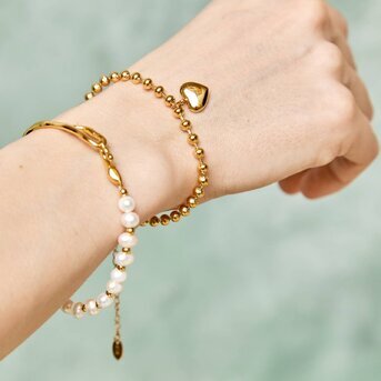 Roestvrijstalen armband met hart LaraVerguld, roestvrij staal.Lengte armband: 16 + 5 cm.Breedte armband: 0,4 cm.Onze sieraden zijn waterdicht en hypoallergeen. De coating gaat lang mee en verkleurt nietLET OP: Het hart is in het echt dicht