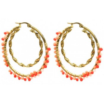 Oorbellen Stainless Steel Glassbeads goud oranje rozeGlassbeads goud, oranje, roze4,5cmNikkel, lood en cadmiumvrij