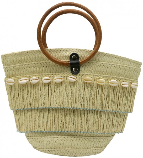 Strand tas met franje en schelpjesDeze stijlvolle bohemian tas straalt een natuurlijke elegantie uit! De tas is gemaakt van een geweven beige stof en heeft een afmeting van 28x20x10 cm, waardoor hij ruim genoeg is voor je dagelijkse benodigdheden. Wat hem extra bijzonder maakt, is de speelse franje aan de onderkant, gecombineerd met decoratieve schelpjes die zorgen voor een authentieke Ibiza-vibe. De ronde houten handgreep voegt een mooi contrast toe en geeft de tas een chique en natuurlijke uitstraling. Of je hem nu meeneemt naar het strand, een festival of gewoon als stijlvolle accessoire, deze tas past perfect bij een bohemian look!